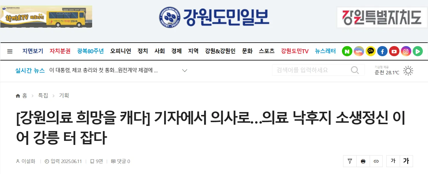 [강원의료 희망을 캐다] 기자에서 의사로…의료 낙후지 소생정신 이어 강릉 터 잡다