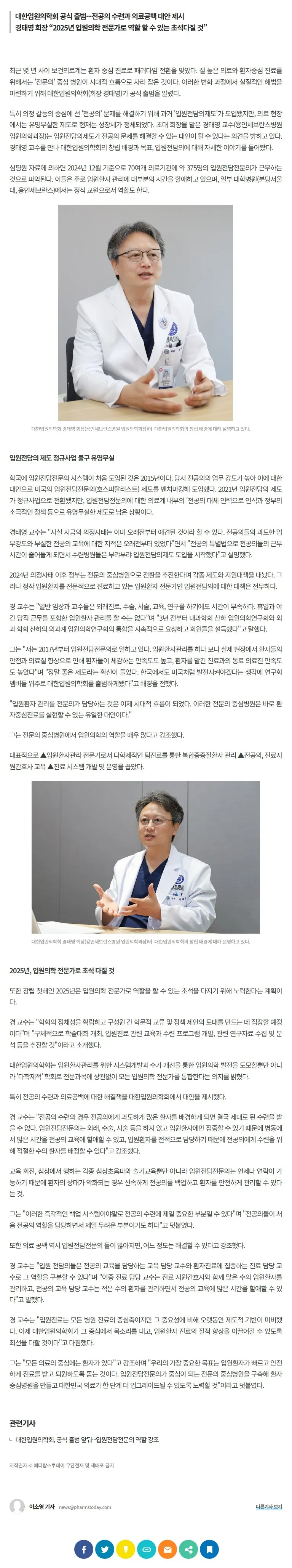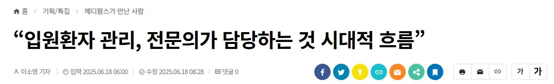 “입원환자 관리, 전문의가 담당하는 것 시대적 흐름”
