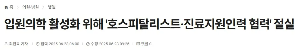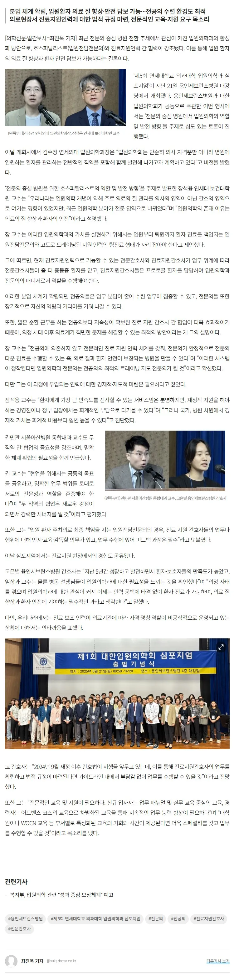 입원의학 활성화 위해 '호스피탈리스트·진료지원인력 협력' 절실