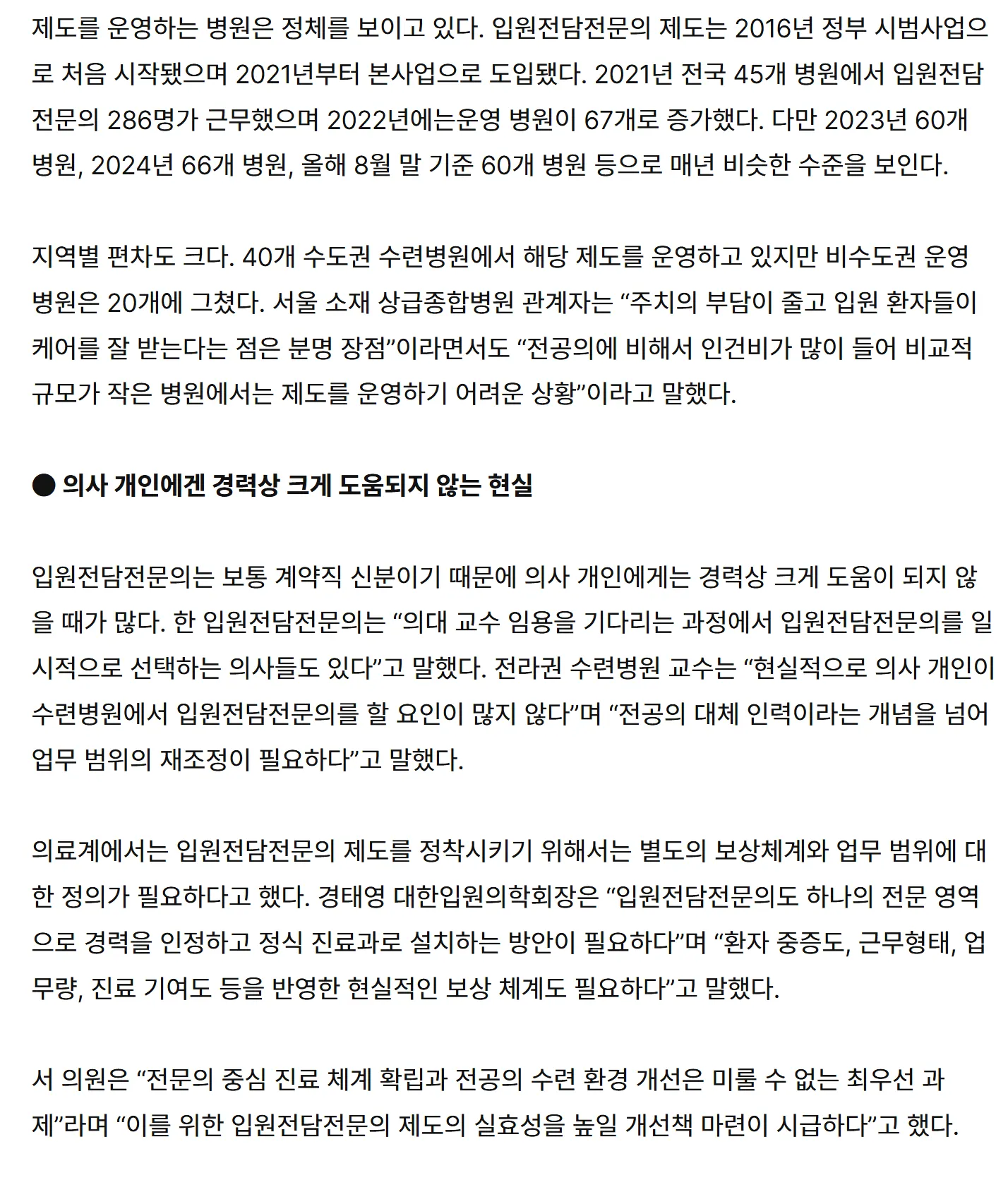 2025.10.22 [동아일보] ‘전문의 중심병원’ 추진에도 입원전담전문의 10곳 중 3곳만 운영