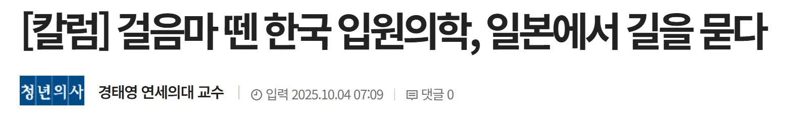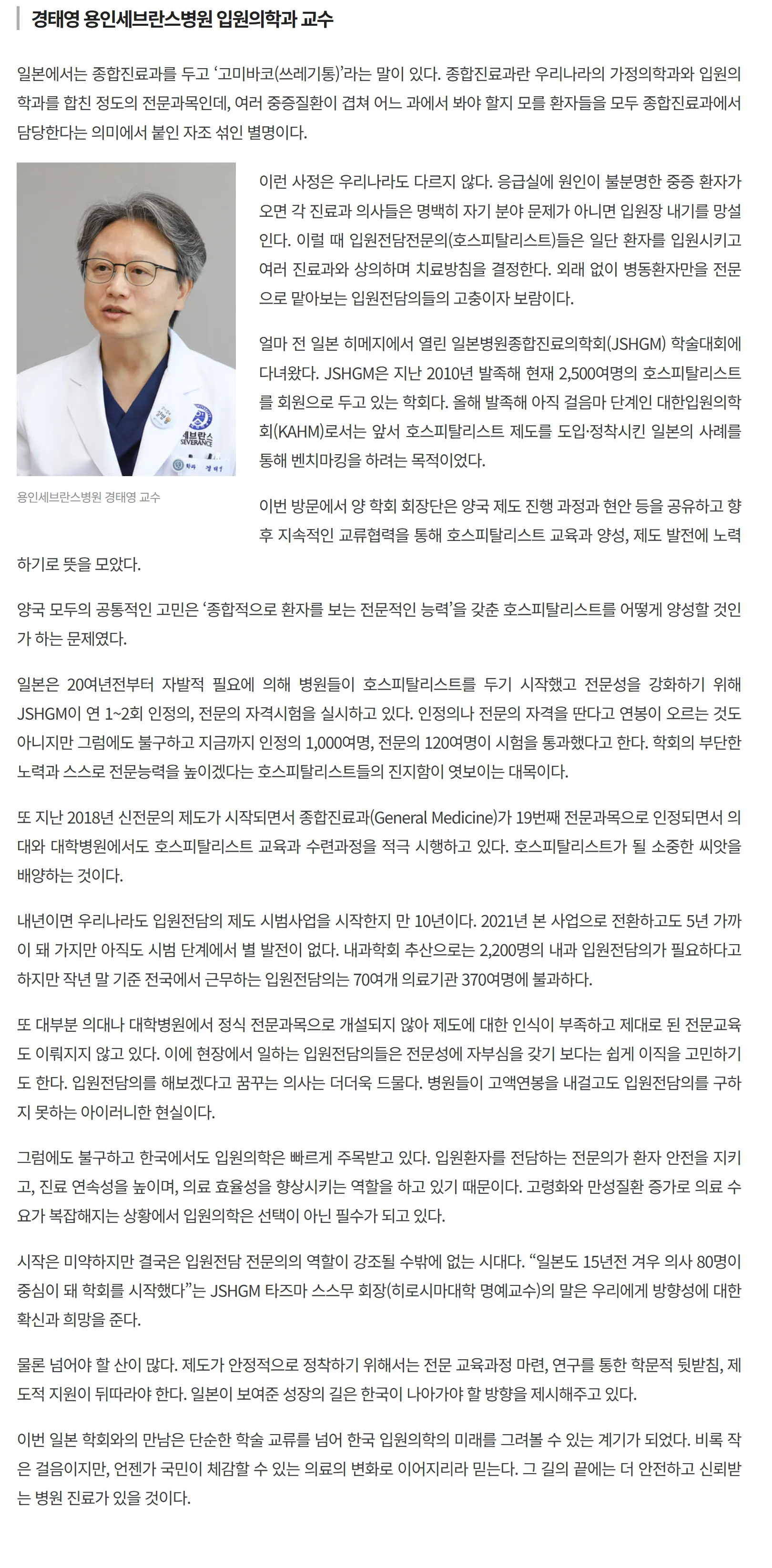 [칼럼] 걸음마 뗀 한국 입원의학, 일본에서 길을 묻다