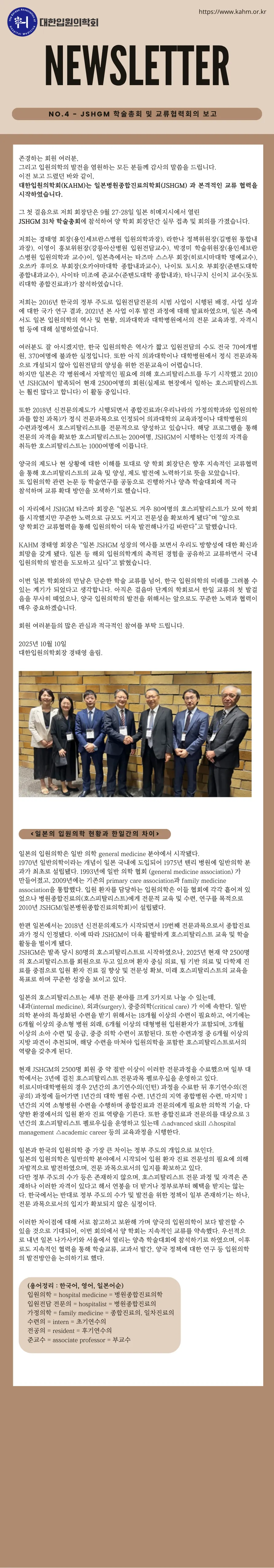 Newsletter No.4 (2025.10.10) - JSHGM 학술총회 및 교류협력회의 보고