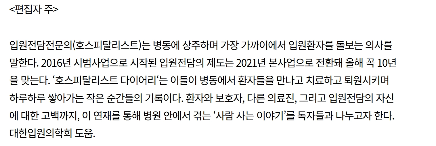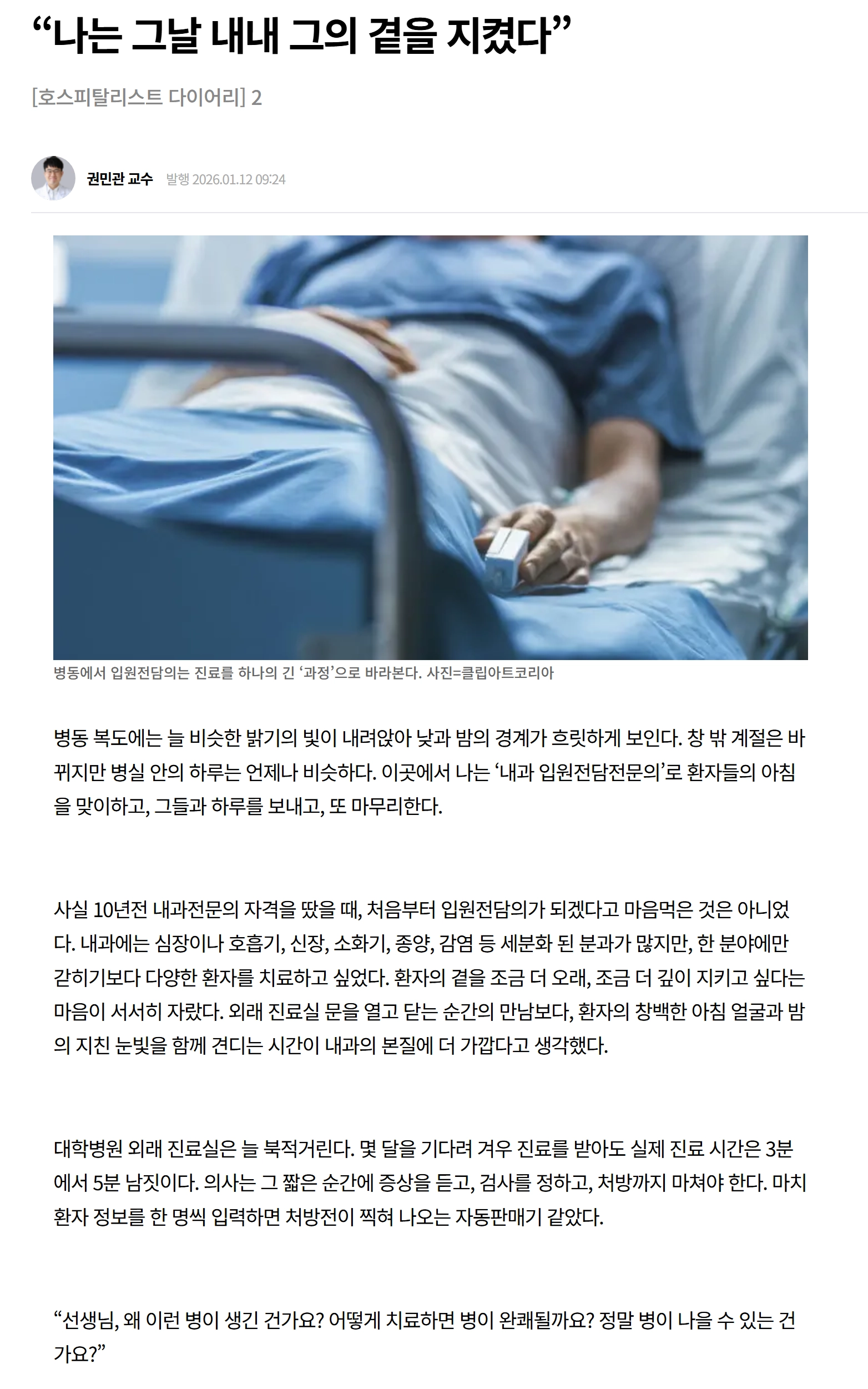 2026.01.12 [코메디닷컴] Hospitalist Diary <2> “나는 그날 내내 그의 곁을 지켰다”